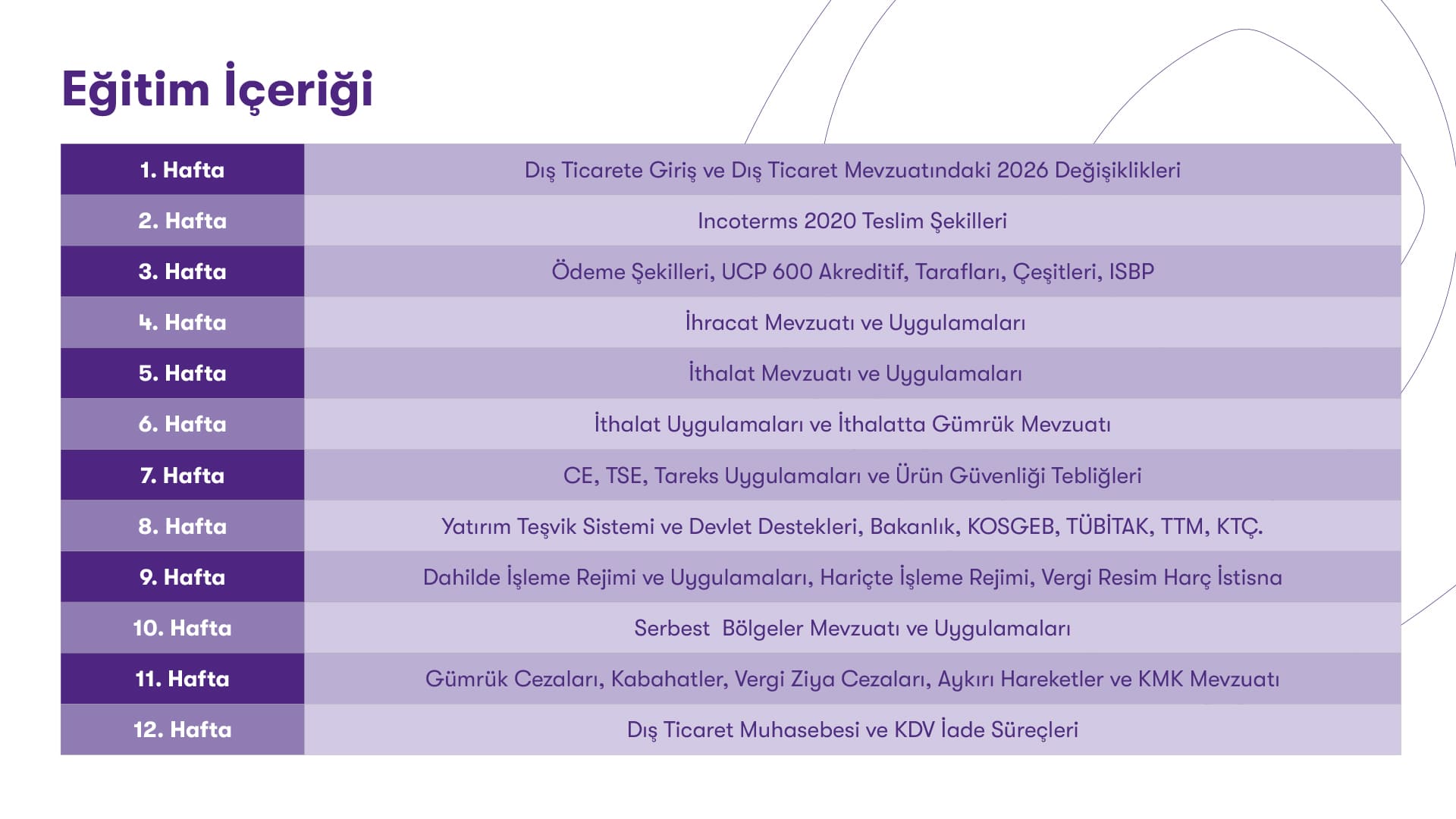 Süre: 12 Hafta
