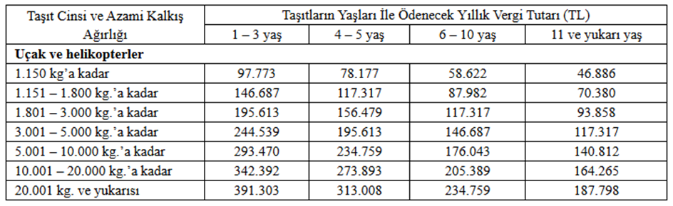 2. (II) Sayılı Motorlu Taşıtlar Vergisi Tarifesi