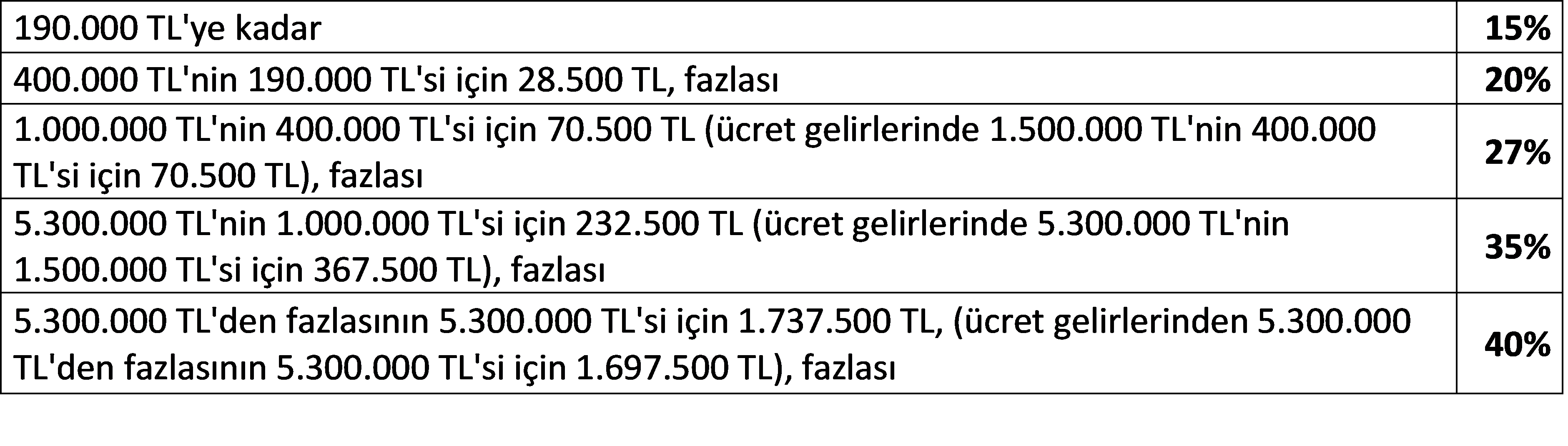 - 2025 yılı vergilendirme dilimleri aşağıdaki gibidir;